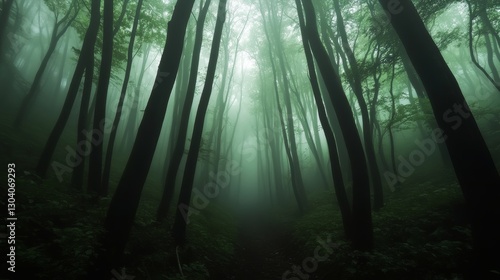 © febrinadwsr, Naklejka premium forest view inside a dark fog. mystical forest