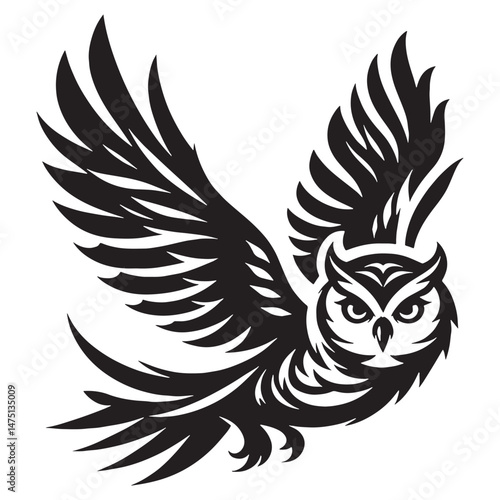 © Vectorhub, Obraz premium Forest Watcher Owl silhouette – Owl illustration – Minimalist Owl vector – Bird silhouette