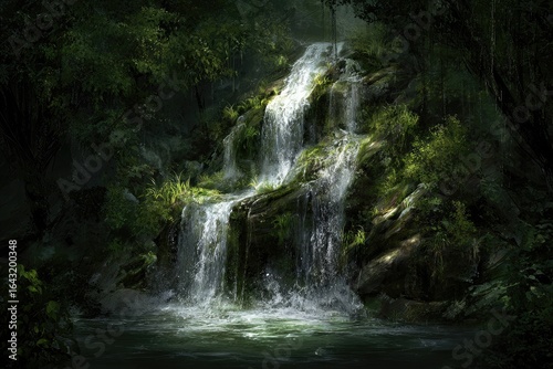 © Bahlil, Fototapeta premium Forest waterfall cascading over rocks