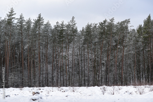 © Kozioł Kamila, Fototapeta premium Forest winter landscape. Trees covered with snow in a mixed forest.