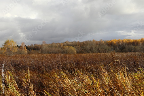 © Vitalii Makarov, Fototapeta premium Forest with dry trees, grass and marshland