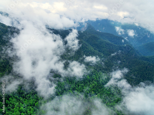 © Novak, Fototapeta premium Forest with fog from above,drone shot