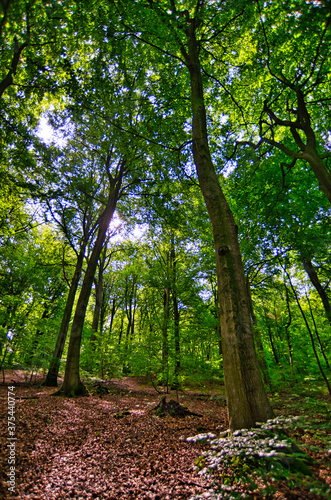 © Marcus Beckert, Fototapeta premium Forest with green trees and sunshine in August