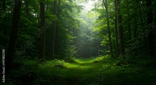 © arazka, Naklejka premium Forest with Greenery and Sunlight