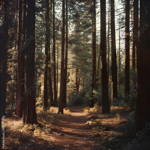 © Badisaba, Obraz premium Forest with Lush Green Undergrowth - Peaceful Woodland Landscape