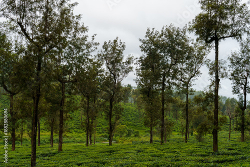 © oybekostanov, Obraz premium Forest with many trees and a cloudy sky
