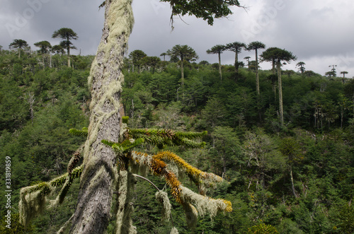 Fototapeta premium Forest with monkey puzzle trees Araucaria araucana.
