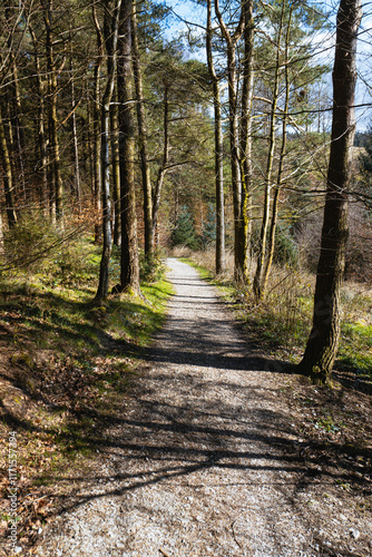 Naklejka premium Forest with Moss-Covered Trees and Green Underbrush