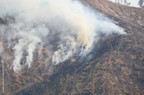 © xiaoliangge, Obraz premium forest with smoke after wildfire