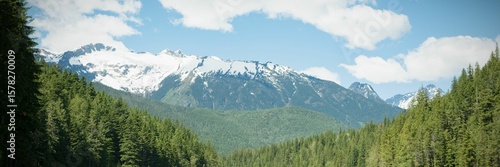 © vectorfusionart, Fototapeta premium Forest with snowy mnountains