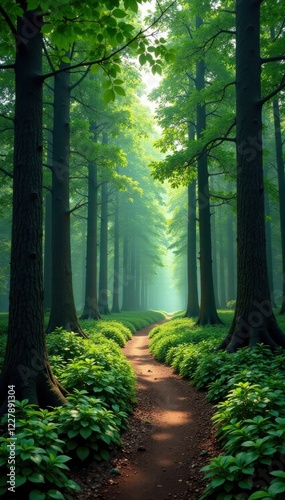 Obraz premium Forest with tall trees and winding path, wilderness, trees