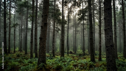Obraz premium Forest with trees in the foreground and background.