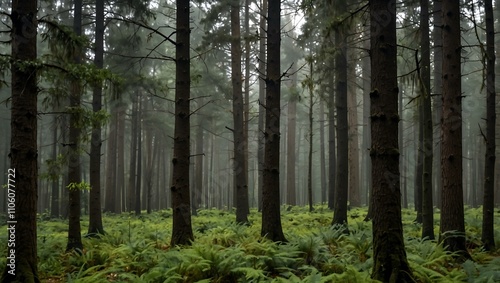 Obraz premium Forest with trees in the foreground and background.