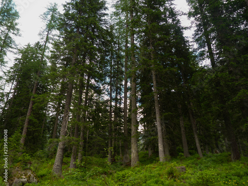 © paolofusacchia, Fototapeta premium Foresta di Conifere alpina con sottobosco