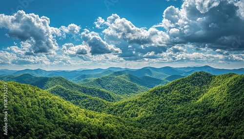 © Azmat Ullah, Obraz premium Forested mountains under a blue sky with clouds