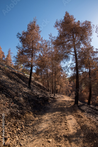 © Michalis Palis, Fototapeta premium Forests and trees burnt during a massive forest fire.