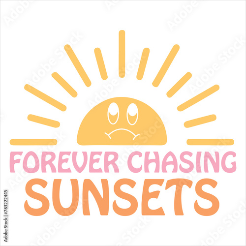 Fototapeta premium FOREVER CHASING SUNSETS BOHO SUMMER T-SHIRT DESIGN,