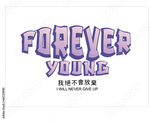 © Gamze, Fototapeta premium forever young slogan with japannese style text vector