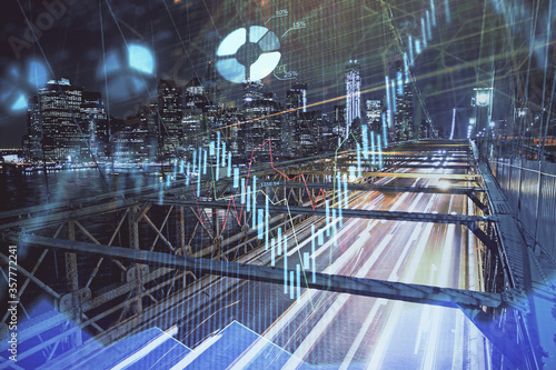 Obraz premium Forex chart on cityscape with tall buildings background multi exposure....