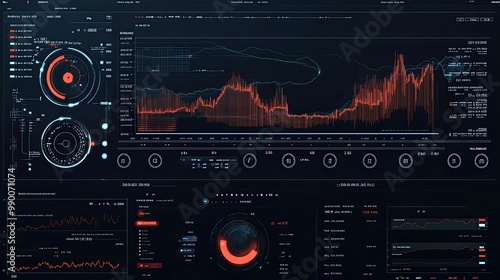 Fototapeta premium Forex trading platform graph with various indicators, showing a dramatic market shift in real-time data analysis.