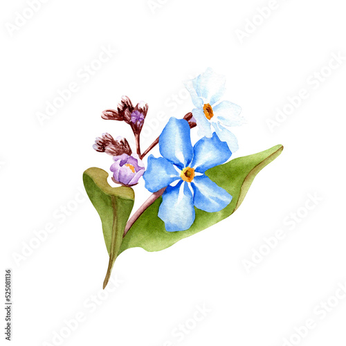 © Modesta, Fototapeta premium Forget me not flower branch watercolor illustration. Isolated on white background.