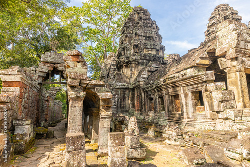 Naklejka premium Forgotten in jungles ancient remains of hindu legendary Banteay Kdei khmer...