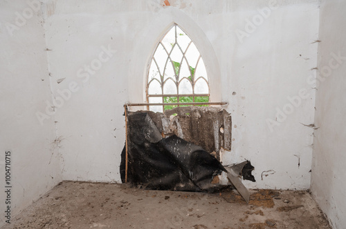 © Galka3250, Fototapeta premium Forgotten Sanctuary of Time: An Abandoned Room with Crumbling Elegance
