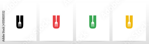 Fototapeta premium Fork On Letter Logo Design U