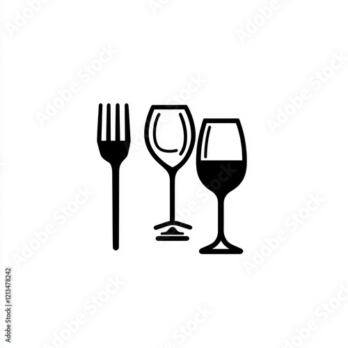 Fototapeta premium Fork with wine glasses, illustration, simple line art, white background, for restaurant menus