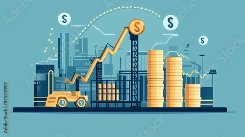 © Wittaya, Obraz premium Forklift lifting gold coins.