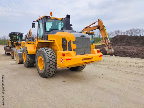 © Solarisys, Obraz premium Forklift truck at construction site at Kiyv
