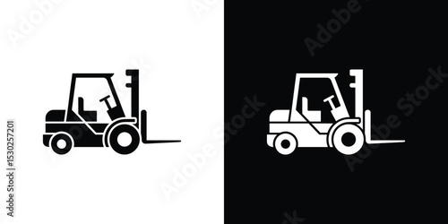 Fototapeta premium Forklift Truck Icon in Black and White Industrial Vehicle, Material Handling...