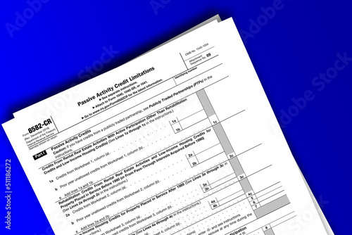 © dmitriy, Obraz premium Form 8582-CR documentation published IRS USA 44105. American tax document on colored