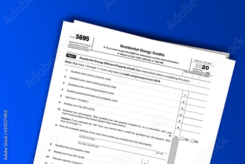 © dmitriy, Obraz premium Form 5695 documentation published IRS USA 44531. American tax document on colored