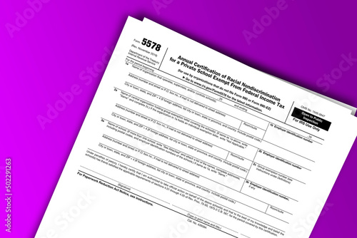 © dmitriy, Obraz premium Form 5578 documentation published IRS USA 43628. American tax document on colored