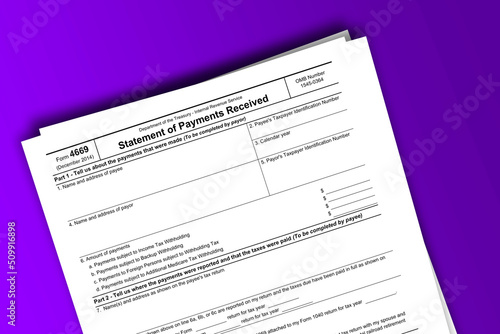 Fototapeta premium Form 4669 documentation published IRS USA 12.18.2014. American tax document on colored