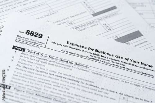 Fototapeta premium Form 8829, Expenses for Business Use of Home, IRS Tax Document Close-Up