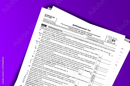 Fototapeta premium Form 1040 (Schedule SE) documentation published IRS USA 10.25.2021. American tax document on colored
