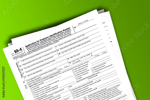 © dmitriy, Fototapeta premium Form SS-4 documentation published IRS USA 01.27.2020. American tax document on colored