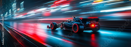 Obraz premium Formula 1 motor sport race car driver at high speed performance motion blur...