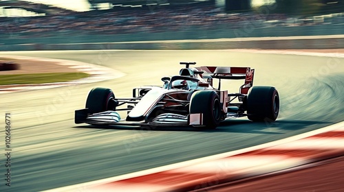 Obraz premium Formula one car speeding through corner on racetrack