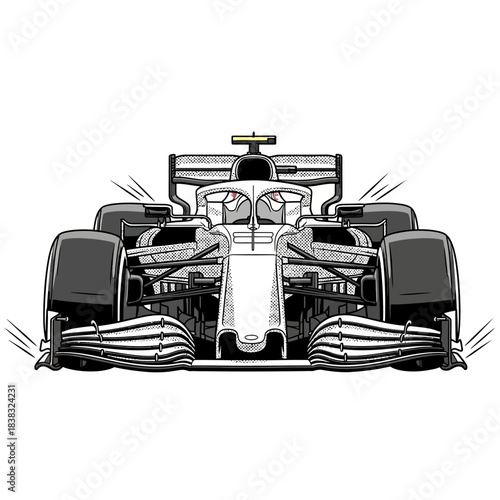 Fototapeta premium Formula Racing Car Front View – Black and White Vector Illustration