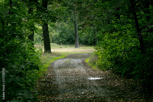 © ohenze, Fototapeta premium Forstweg führt in einen Wald