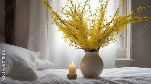 © RORON, Naklejka premium forsythia on the bed