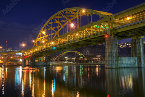 © Jeffrey Kreulen, Obraz premium Fort Duquesne Bridge at Night