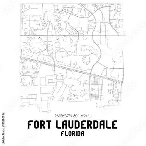 Fototapeta premium Fort Lauderdale Florida. US street map with black and white lines.
