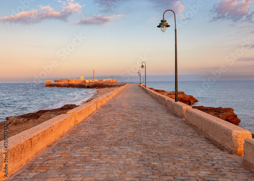 © pillerss, Obraz premium Fort Saint Sebastian and the bridge to it at dawn.