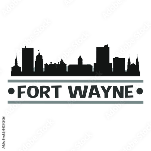 Naklejka premium Fort Wayne Indiana City Travel. City Skyline. Silhouette City. Design Vector. Famous Monuments.