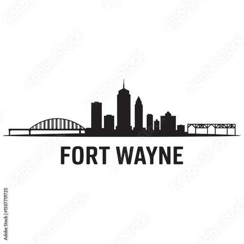 © firoz, Obraz premium Fort Wayne skyline horizontal banner. Black Fort Wayne, Indiana. Vector template for your design. Vector black silhouette. with white background