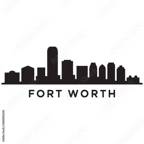 Obraz premium Fort Worth skyline horizontal banner. Fort Worth, Texas. Vector template for your design. Vector black silhouette. with white background